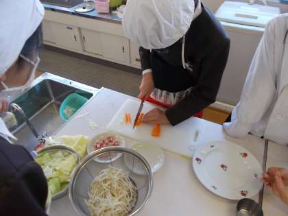 6年生になって初めての調理実習のメニューは、やきそばです。