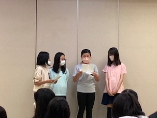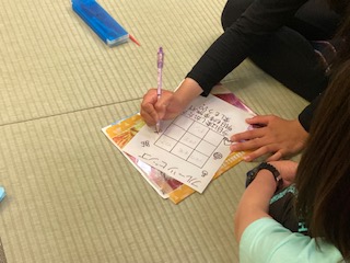 ?フルーツビンゴです。生活班ごとに9つのフルーツを考えて書きます。