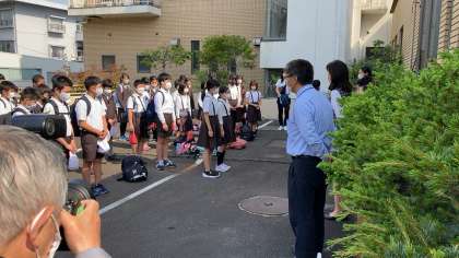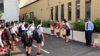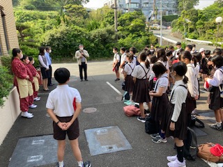 大きな荷物をバスのトランクにいれてから閉舎式パシフィックホテルの皆さん大変お世話になりました。ラジオ体操をした屋上テラスから見た景色は最高でした。どうもありがとうございました。