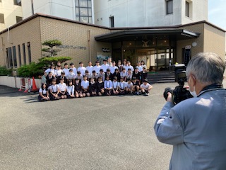 ?最後に宿舎前で記念写真です。「マスク取りなさい」と、強要しません。
