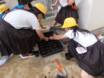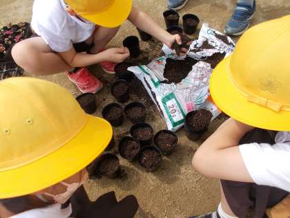 プラグ苗をポットに移し替えたり、プランターの枯れた花を抜き、新しい花や苗を植えました。
