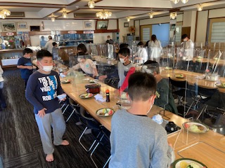 食事係が、ご飯とお茶とお味噌汁を入れます。