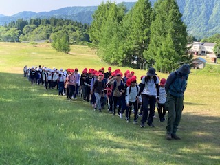 登山開始10分経過、まだきちんとまとまって歩いています。