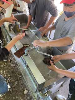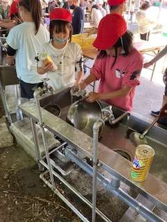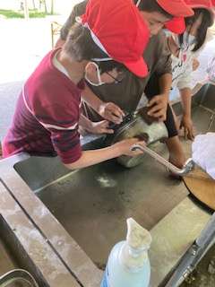 代わりばんこで磨く班や、1つの鍋に3人4人で磨く班もいます。