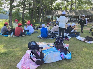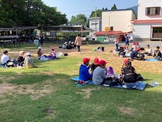 いただきます。晴天なので外で食べます。