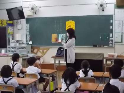 この間、中止していた、読み聞かせグループ「おはなし すまいる」さんの2年ぶりの再開です。6月7日(火)は1年生1組2組で読み聞かせをしていただきました。今後、毎週火曜日にしていただきます。