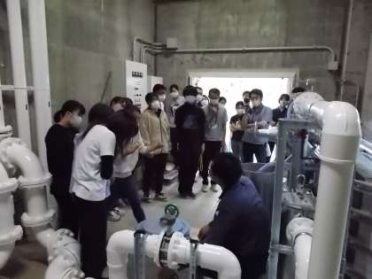 来週プール開きです。新しくなったプールろ過機の使い方の研修を行いました。