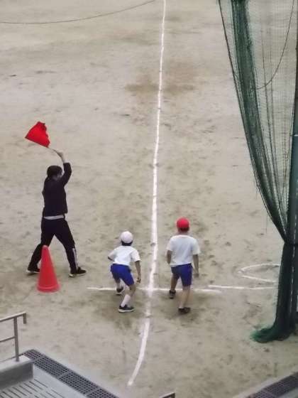 50メートル走の記録を計測しました。(写真は2年生です)