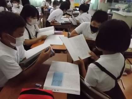本校は今年も国語科の研究をしています。4日(月)6時間目、5年2組で研究授業がありました。
