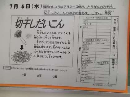 先生「前のは、しょうゆで味付けているので茶色なんですね。今日は、ゆずの香あえだから白いんだね。」