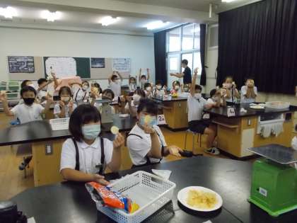 一回のおやつで適切な量を、実際のポテトチップスを量って考えたり、成分表示の見方について知ったり、楽しく学習することができました。