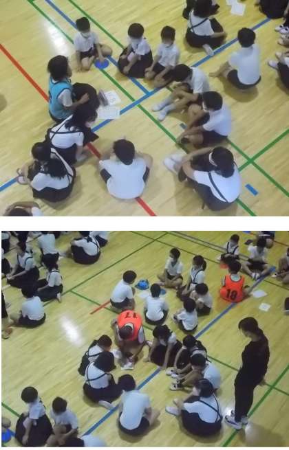 集会委員からのお題から連想するものを、チームで一斉に声に出します。その答えの多かった人数がチームのポイントになります。