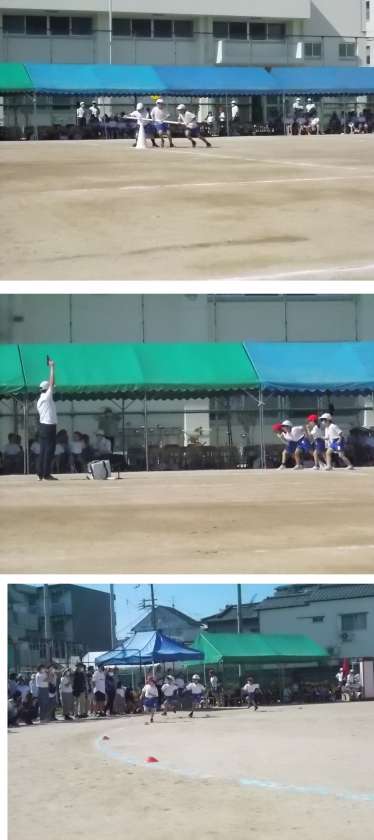 続いて5年リレー、3年旋風をまきおこせ、1年個人競走、5・6年騎馬戦、中間発表。