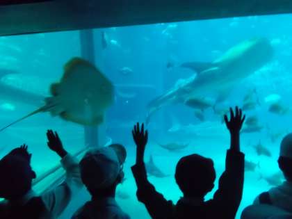 海遊館では、大きなジンベイザメやエイに驚いていました。