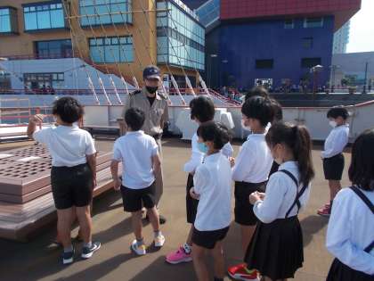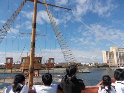 その後、サンタマリア号に乗船し、大阪湾から港区の様子を眺めました。
