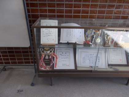 玄関のショーケースに賞状、トロフィを飾ってあります。ぜひご覧ください。