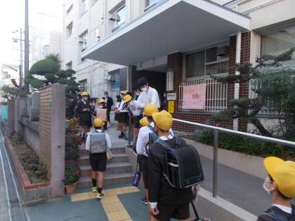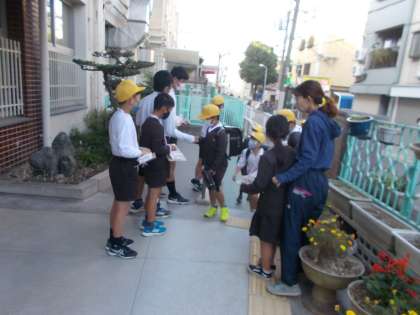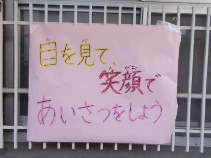 代表委員の児童が、朝、正門に立ってあいさつ運動を盛り上げます。