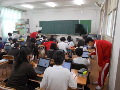 教室に入って、授業の手伝いをしたり、理科室や体育倉庫の整備などをしました。
