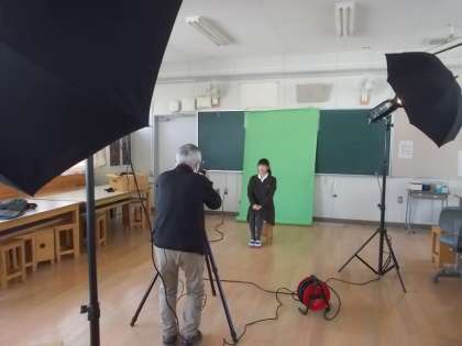 朝から、6年生の卒業アルバム用の写真撮影でした。まず、職員集合写真、次に6年生の集合写真、続いて正門で撮影、教室で撮影、そして、一人一人の個人写真撮影でした。個人写真は、ナライ写真館から、図工室にスタジオのセットを持ち込んでの撮影でした。
