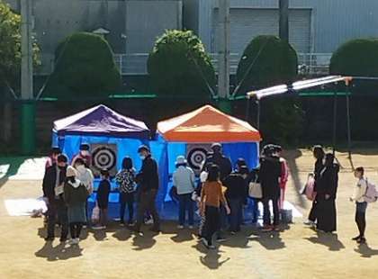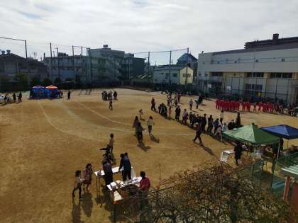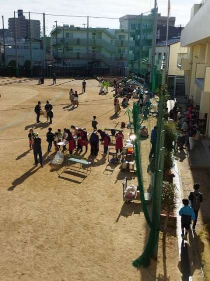 ふれあいまつりを開催していただきました。運動場では地域のみなさんに焼きいも、豚汁、わたがし等の食べ物コーナーを作っていただきました。講堂内ではPTAのみなさんにスタンプラリー形式で楽しむ六つのゲームコーナーを作っていただきました。また、標準服リユースのコーナーも作っていただきました。市岡東中学校バドミントン部のみなさんにもボランティアとしてお手伝いいただきました。子どもたちは大喜びで、楽しく過ごしていました。本当にありがとうございました。はぐくみのうた「大好き!南市岡」の歌詞にあるように、地域のみなさん、PTAのみなさん、児童生徒が一つになり、地域の輪が大きく広がる一日になりました。