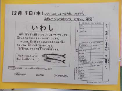 「今日のいわしは、まるごと食べられますよ。骨もたべられるからね。」