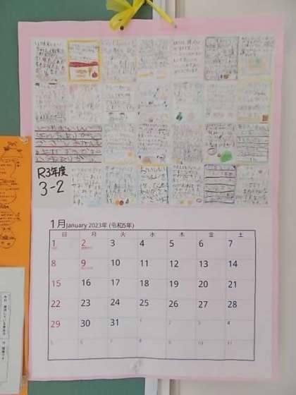 1月は、去年の3年2組の児童が書いた、調理員さんへの一言(感謝の気持ち等)です。