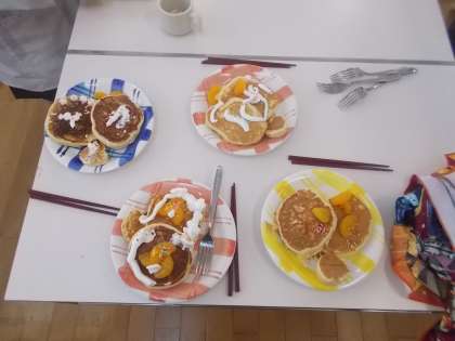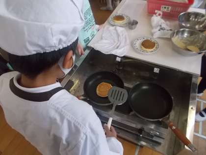 小学校での最後の調理実習で、ホットケーキ作りをしました。