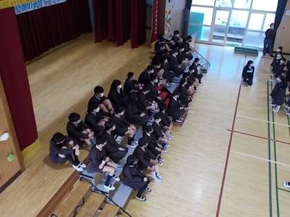 そして、全学年で校歌を歌いました。全員で歌うのはこれで最後です。少ししんみりしました。