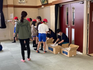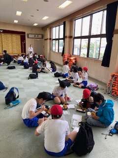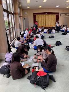 本来でしたら浜で食べるのですが、今日は風が強すぎるので、近くの漁業センターをお借りしました。