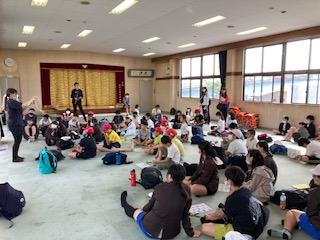 風が強すぎるので、釣り体験は実施できませんでした。その代わりに、アクセサリー作りをすることになりました。