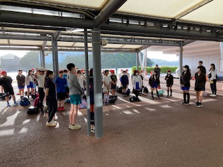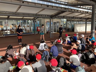 鳥羽マリンターミナルに戻ってきました。お世話になった遊民クラブのきえちゃん、ちほちゃん、まこちゃんに、児童を代表してあいさつしました。