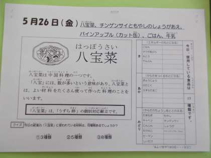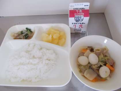 今日の八宝菜は、うずら卵の個別対応献立でした。