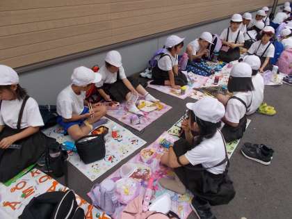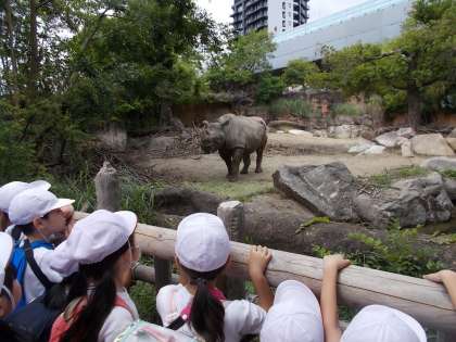 1・2年生で一緒に天王寺動物園に出発しました。2年生にとっては、先週から延期となり、待ちに待った校外学習でした。園内では、動物が動くたびにみんな思わず歓声を上げて見入っていました。本日多くの人が来園して、デッキ下のイベント広場は大混雑でしたが、みんな肩を寄せ合ってお弁当を楽しくいただきました。