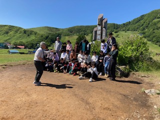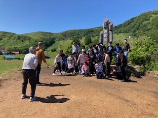 ハチ高原ではお決まりの、モニュメント前での集合写真です。