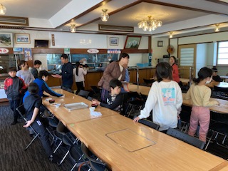 最終、食事係が、机の上の台ふきなど、片づけの点検をします。