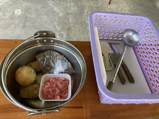 飯盒炊さんです。谷常さんからの、丁寧な作り方の説明です。しっかり聞けば、おいしいカレーが作れます。