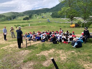食べた後は、班で協力して片付けます。谷常さんの説明を聞いています。