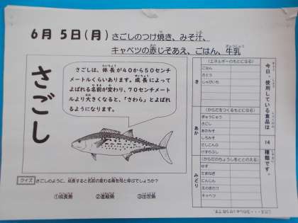 先生「今日のさごしには、甘辛く味付けがされていますが、もう一つ、何の香りがしているのかわかるかな?」