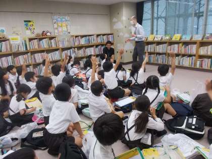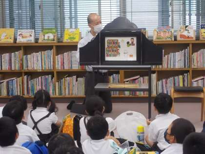 図書館に着くとすぐに、図書館の使い方や役割などを紙芝居で楽しく教えていただきました。