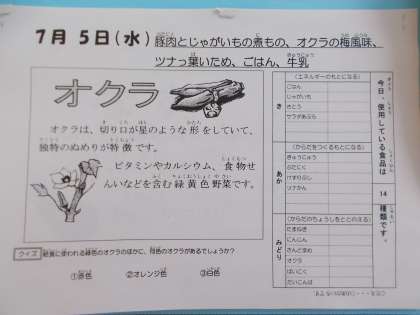 先生「今日のオクラは、甘酸っぱい梅の味がしているのが、分かったかな?」