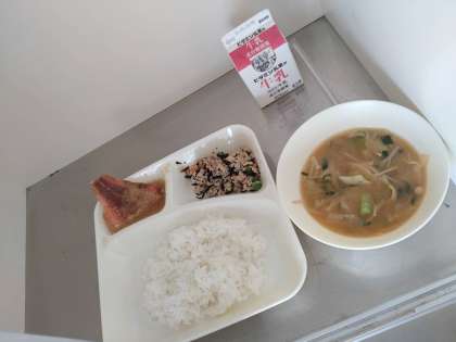 野菜のうま味がしっかり出て、甘くておいしい給食のみそ汁ですね。