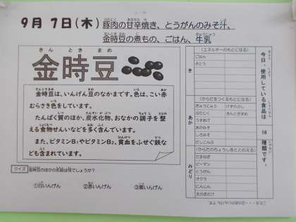先生「金時豆の煮ものを今日、初めて食べた人?」