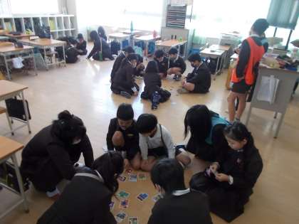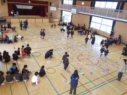1月22日、2学期にする予定だった「ジャンボかるた大会」がありました。ジャンボな「南市岡地域かるた」を使っての、縦割りの行事です。