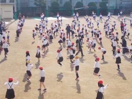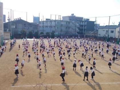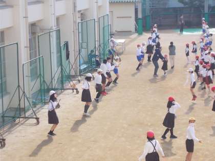 1月29日から3日間、なわとび週間でした。15分休みに全児童が運動場にでて、音楽に合わせてなわとびに取り組みました。運動委員会の児童が前でお手本になって進めました。
