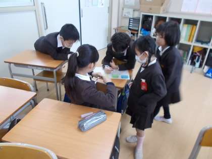 卒業を祝う会に向けて、6年生へのメッセージカード作りをしました。当然6年生はいません。そうです、5年生が中心になって、メンバーをまとめるのです。5年生のみんな、頑張っていました!
