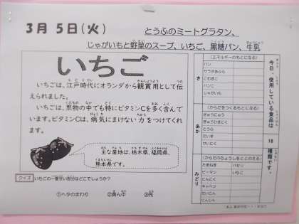 とうふのミートグラタン、じゃがいもと野菜のスープ、いちご