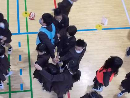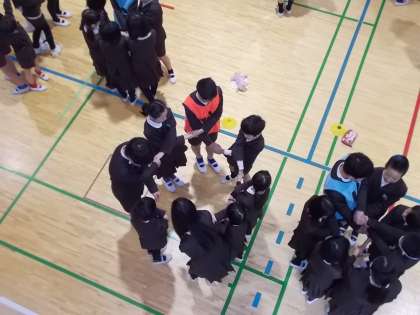 班のメンバーで輪になって手をつなぎます。その手を離さず、ほといていくゲームです。