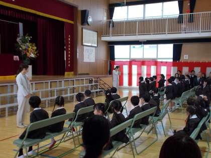 校長先生のお話のあと、PTA会長山田さんからお話、来賓の方々のご紹介がありました。