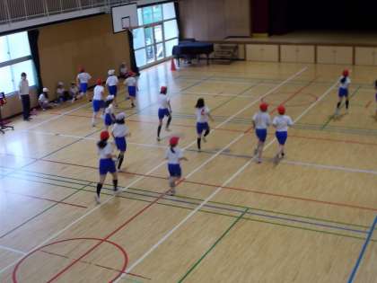 5年生が20mシャトルランを実施しました。20mの距離を一定時間に往復します。持久力を計る種目です。