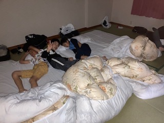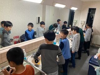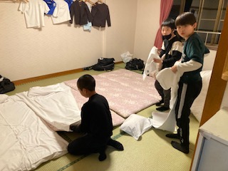 歯磨きをする人と布団を敷く人に分かれて手際よく。